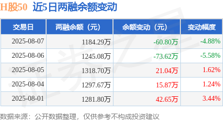 本站音讯,8月7日,H股50(159850)融资买入91.01万元,融资偿还151.8万元,融资净卖出60.8万元,融资余额1184.29万元。